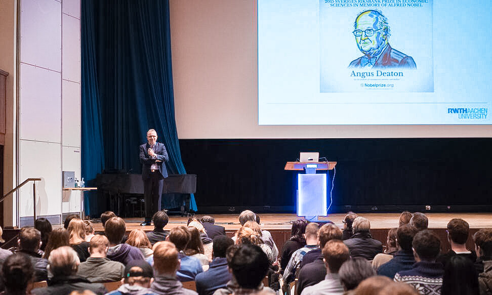 Das WiWi Network lädt jährlich in Kooperation mit der Fakultät für Wirtschaftswissenschaften zur wirtschaftswissenschaftlichen Nobel Prize Lecture an der RWTH Aachen ein. Bei dieser Veranstaltung stellen Professor:innen der Fakultät WiWi ausgewählte Wirschaftsnobelpreisträger:innen und deren bedeutenden Forschungen auf verständliche Weise vor. Du erhältst aufschlussreiche Einblicke über die preisgekrönten Ökonomen und Wissenschaftler und ihre besonderen Beiträge zur Ökonomie und Wirtschaftsforschung.Nach einer anschließenden Fragerunde können die Teilnehmer die Veranstaltung bei einem kleinen Umtrunk im persönlichen Gespräch ausklingen lassen.